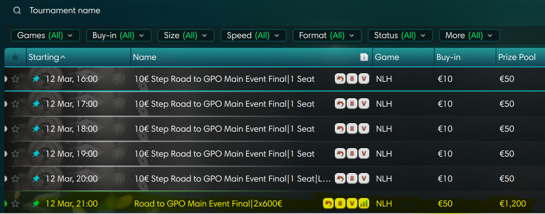 Νωρίτερα μέσα στη μέρα θα “τρέχουν” step satellites των €10 που οδηγούν στον βραδινό τελικό.