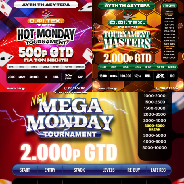 H νέα εβδομάδα ξεκινάει με τα αγαπημένα Mega Monday, Tournament Masters, Hot Monday και 4.500p gtd!