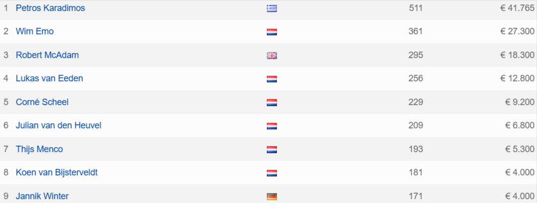 Μετά από αρκετές ώρες δράσης κι αφού κατέβαλε το εμπόδιο του Wim Emo στο heads-up κατέκτησε την κορυφή για €41.765 + ένα πακέτο αξίας $5.000!