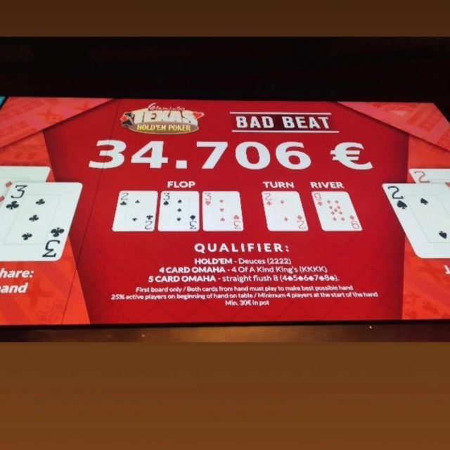 - Bad beat jackpot που ξεπερνάει πλέον τα 34.000 ευρώ