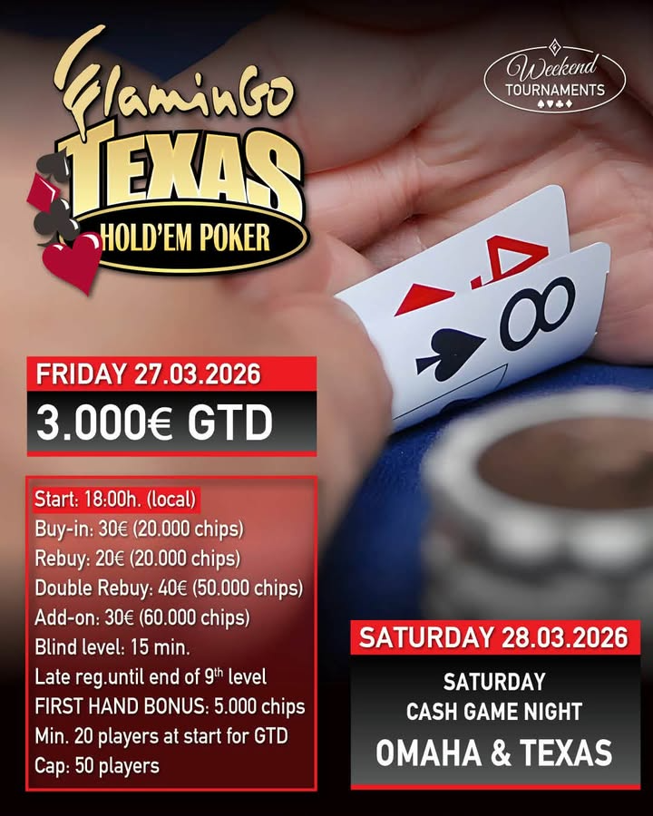Τα δημοφιλή τουρνουά επιστρέφουν και πάλι στο Flamingo poker room που βρίσκεται αμέσως μετά τον συνοριακό σταθμό των Ευζώνων!