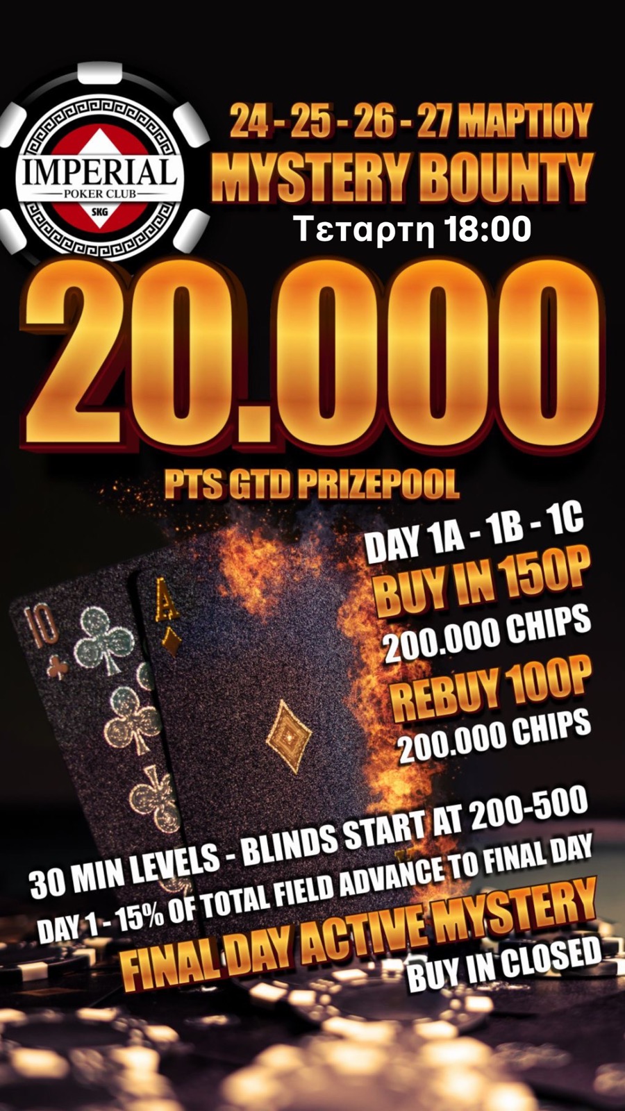 Εκπληκτικό ξεκίνημα για το τετραήμερο Mystery 20k gtd με 60 παίκτες, 81 rebuys και 12.975p ήδη στο prize pool!