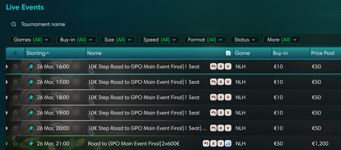 Νωρίτερα μέσα στη μέρα θα “τρέχουν” step satellites των €10 που οδηγούν στον βραδινό τελικό.