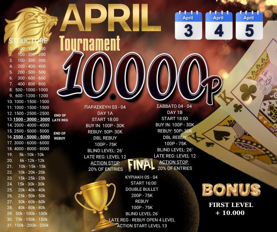 Eπιστροφή στο κλασικό Texas Hold” em, με το νέο 100p special event να μοιράζει τουλάχιστον 10.000p το διάστημα 3-5 Απριλίου.