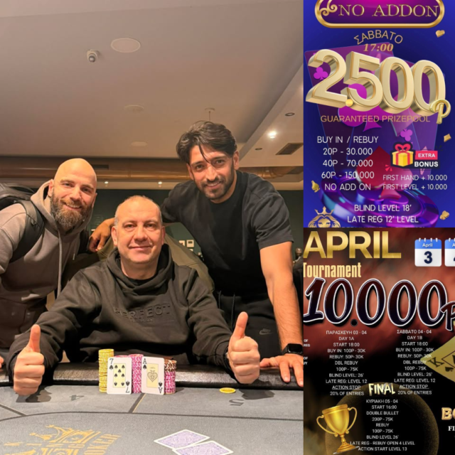 Λίγο νωρίτερα όπως κάθε Σάββατο (17:00) η έναρξη του No Addon που συνοδεύεται και πάλι από 2.500p gtd, ενώ δεν θα λείπουν και τα ring games τις βραδινές ώρες!