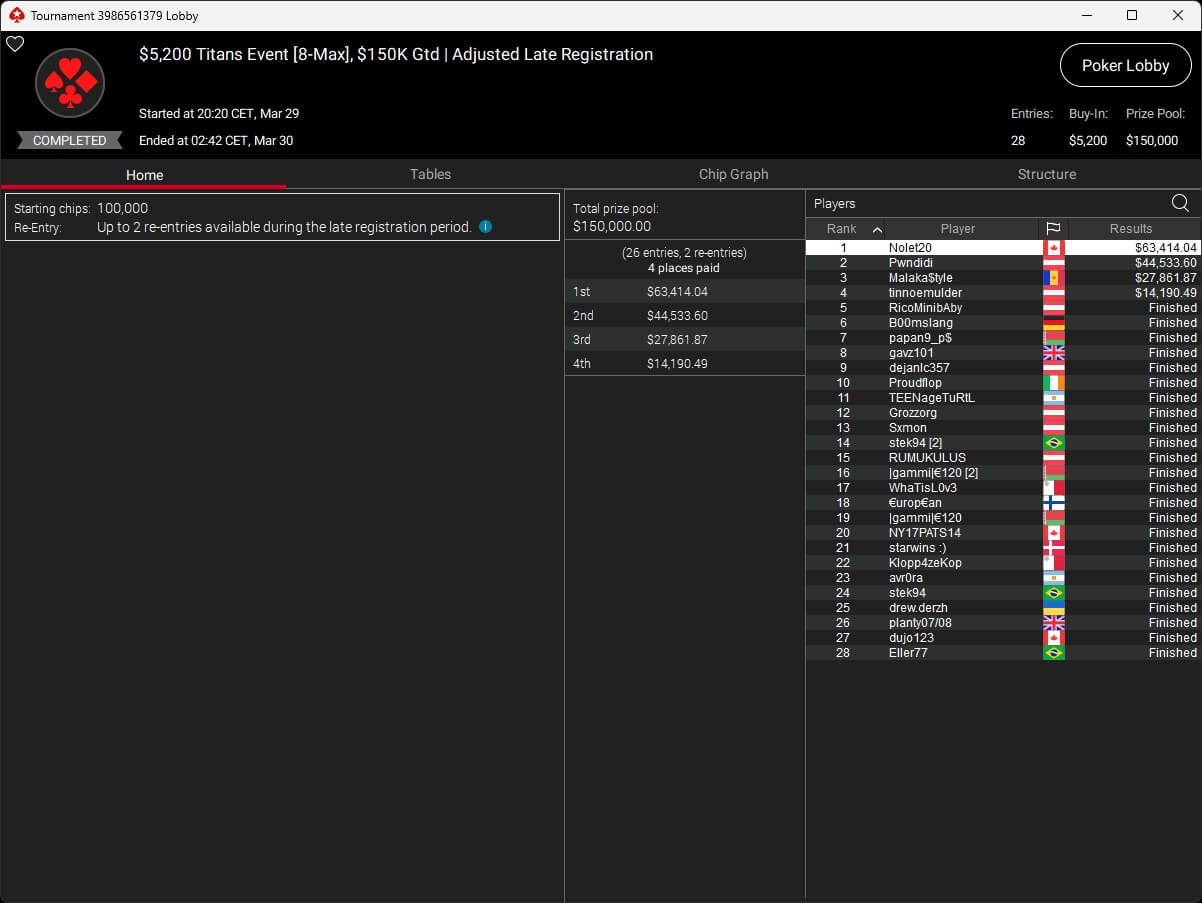 Στο heads-up του $5.200 Titans event (PokerStars) ηττήθηκε χθες ο Αλέξανδρος “Pwndidi” Θεολόγης κερδίζοντας $44.534!