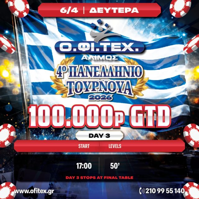 Στις 17:00 η day 3 του Πανελλήνιου (100.000p gtd)