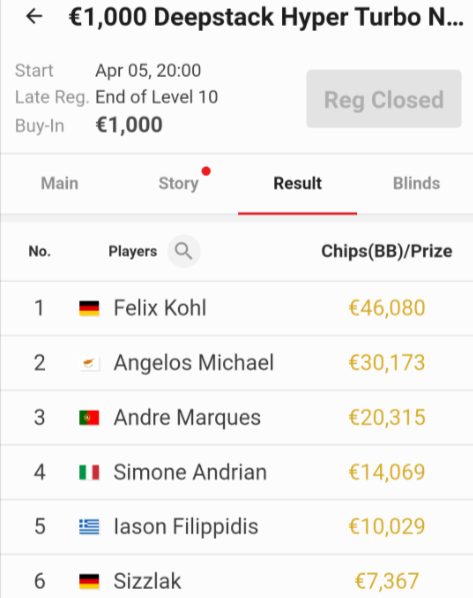 To τουρνουά συγκέντρωσε 238 συμμετοχές με 36 παίκτες να μοιράζονται το prize pool.