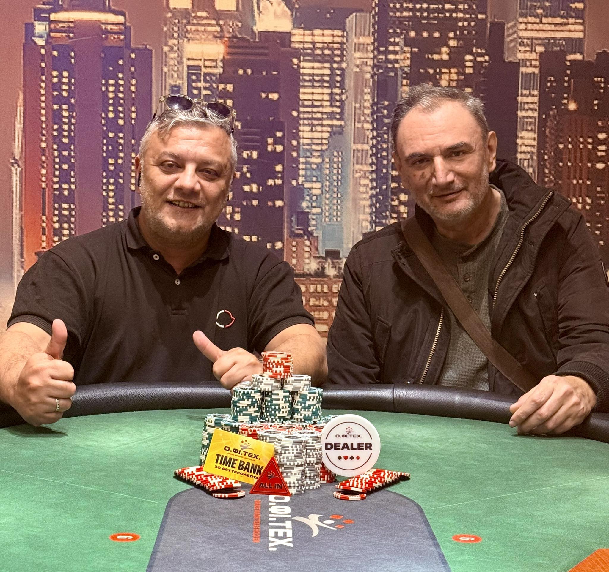 Στo Masters του Αμαρουσίου τέλος (48e/37er/30a – 2.760p) oι Θανάσης Λύρας και Θανάσης Δάρας (φωτο) εξασφάλισαν από 750p, ενώ στο Οmaha tour του Πειραιά (25e/21r/12a) νικητής ήταν ο Αζαντ για 650p.