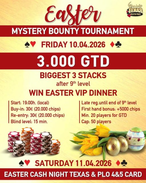 Στις 19:00 τοπική / 20:00 Ελλάδος θα διεξαχθεί το τουρνουά της Παρασκευής (με €3.000gtd), ενώ το σαββατόβραδο η δράση θα εκτοξευθεί στα cash games!