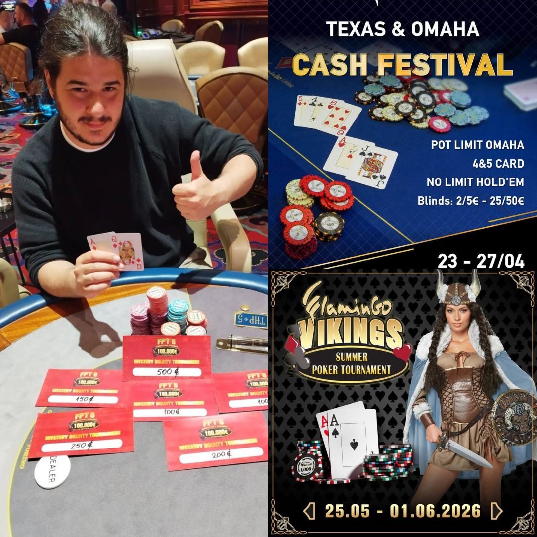 Mην ξεχνάτε πως υπάρχει και bad beat jackpot άνω των 36.000 ευρώ που μπορεί να “εκραγεί” ανά πάσα στιγμή, ενώ ανακοινώθηκε cash games festival από 23 έως 27 Απριλίου και νέο Vikings festival από 25 έως 31 Μαΐου.