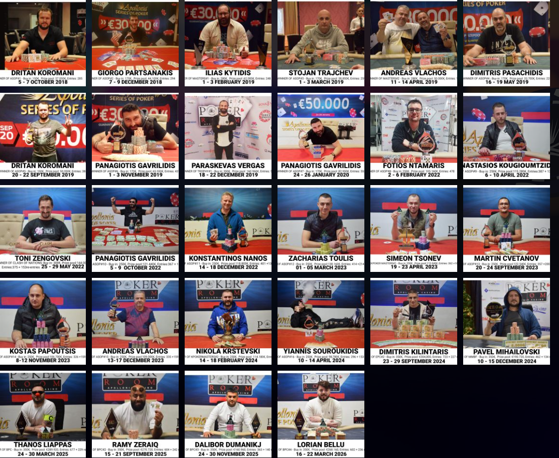 H “χρυσή βίβλος” του Apollonia poker room ετοιμάζεται να προσθέσει ένα ακόμη όνομα νικητή στο Hall of Fame!