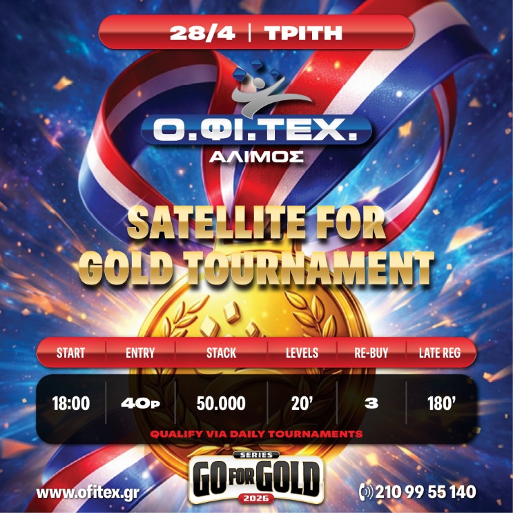 Υπενθυμίζουμε πως την ερχόμενη Πέμπτη ξεκινάει η Go for Gold Series με τη Day 1a του Gold 50k gtd στο Μαρούσι.