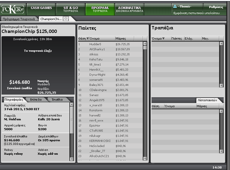 Για την ιστορία, ο “AKSharky” έμεινε δεύτερος αποκομίζοντας κάτι παραπάνω από $18.500, με τον μεγάλο νικητή “Hudder5” να προσθέτει $26.725,35 στις καταθέσεις του.