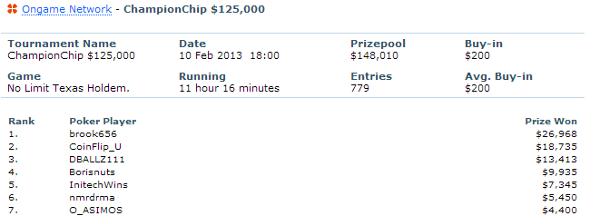 Νικητής του τουρνουά αναδείχθηκε εν τέλει ο ‘brook656’ που αποκόμισε συνολικά $26.968!