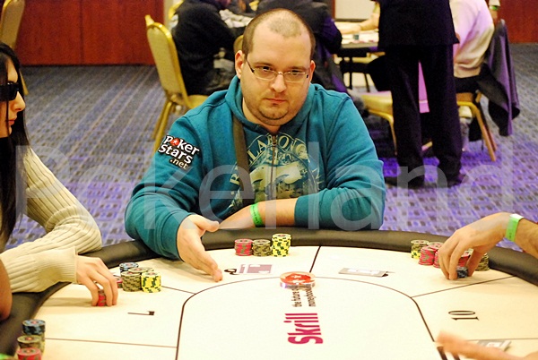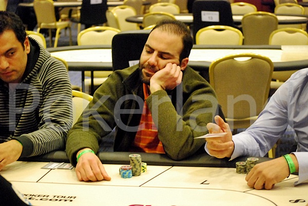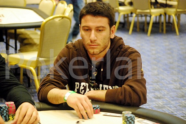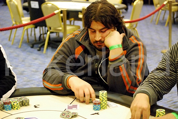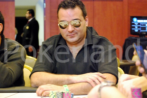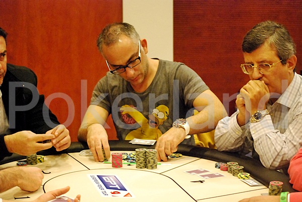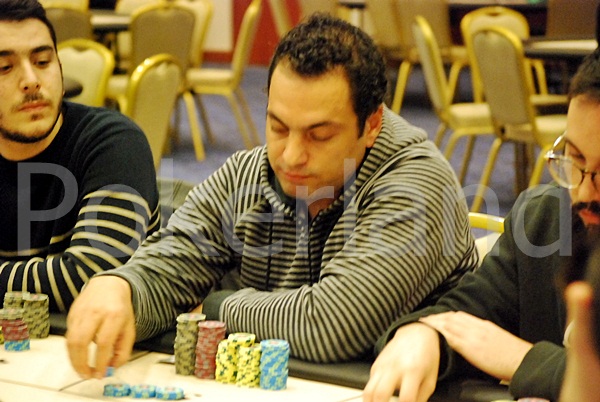 Blinds 10.000/20.000 ante 2.000: Στην 18η θέση ο Αργύρης Δημητρέλης (φώτο) o οποίος είχε πέσει στις 200.000 μάρκες. Όλοι πάσο μέχρι τον Σταύρο Πουλυκαράκο που μπαίνει all in από το sb με 3-3 με τον Αργύρη να κάνει call από το bb με Q-7 χωρίς να τον βοηθήσει το board. Το έπαθλο του €2.360