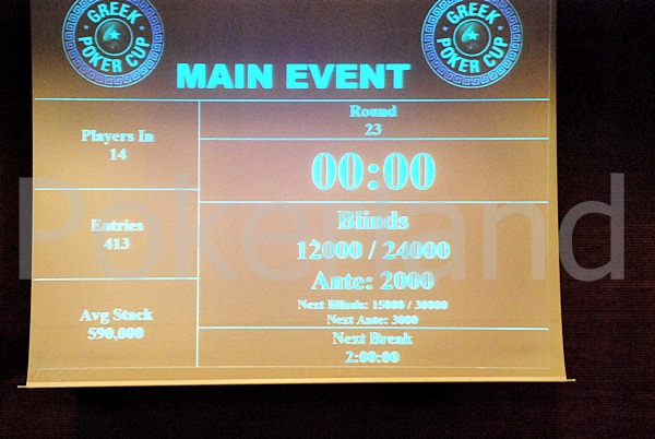 Blinds 60.000/120.000 ante 15.000 Στην 5η θέση ο Γ.Λ. για €13.630.