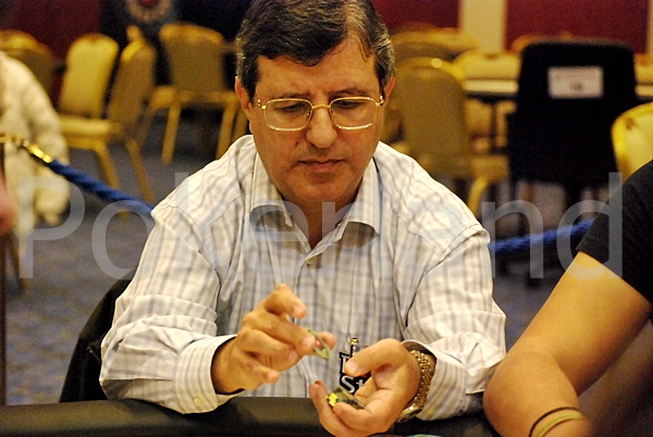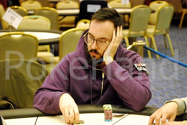 Blinds 12.000/24.000 ante 2.000: Την παρτίδα την πιάσαμε στο river. Σε board 2-3-7-9-9 ο Αναστάσης Λιακάκης ποντάρει 170.000 μάρκες, raise ο Γιώργος Σούρλας (φώτο) στις 340.000, call o Λιακάκης ο οποίος δείχνει Κ-Κ, με τον Γιώργο να έχει trips αφού άνοιξε 8-9 και να κερδίζει την παρτίδα. Στο 1.500.000 το στακ του.