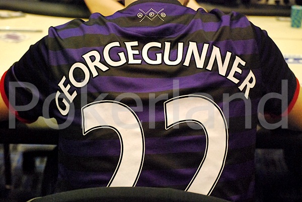 Blinds 12.000/24.000 ante 2.000: Ο Γιώργος Σούρλας έχει έρθει σήμερα με την εμφάνιση της αγαπημένης του ομάδας, της Άρσεναλ. Όπως μπορείτε να δείτε πίσω στην φανέλα γράφει GeorgeGunner όπως είναι και το screen name του στην Pokerstars.