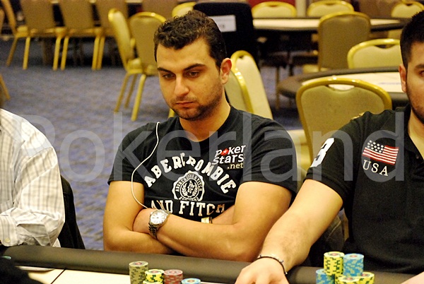 Blinds 20.000/40.000 ante 4.000: Διπλασιασμός για τον Δ.Α., όταν ο Βασίλης Παναγιωτίδης έκανε raise με K-Q, και ο Α. μπήκε all in για 520.000 μάρκες με Α-J με το board να μην βοηθάει τον Βασίλη. Στο 1.150.000 το στακ του Α.