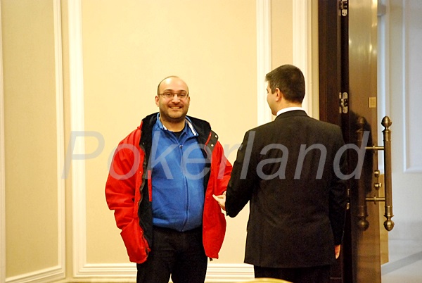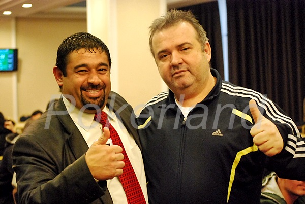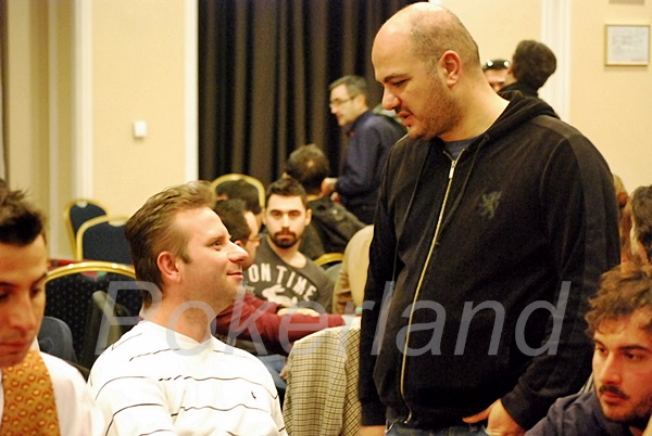 15.000 μάρκες είναι το αρχικό στακ του PLC #6, τα blinds ανεβαίνουν κάθε 60 λεπτά. Στη φωτό ο διευθυντής του poker room του Princess Casino με τον Ανδρέα Βλάχο.
