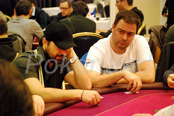 Day 1, blinds 100/200: ΄Εληξε το level, ολοκληρώθηκε και η περίοδος του lat eregistration και των re-entries. 87 οι τελικές συμμετοχές, έγιναν 11 re-entries. Σε λίγη ώρα θα ανακοινωθούν τα έπαθλα του Main Event, που θα μοιραστούν στους 10 πρώτους. Στη φωτό ο Χάρης Ουσταμπασίδης και ο Αστέριος Νακούδης.