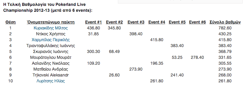 Ορίστηκε τελικά η ημερομηνία διεξαγωγής του τελικού τραπεζιού για το leaderboard της πρώτης σεζόν του PLC. Πιο συγκεκριμένα οι 10 παίκτες που συγκέντρωσαν τους περισσότερους βαθμούς στα events του Pokerland Live Championship, θα αναμετρηθούν την Κυριακή 1 Δεκεμβρίου και ώρα Ελλάδας 5μμ στην αίθουσα πόκερ του καζίνο Princess.