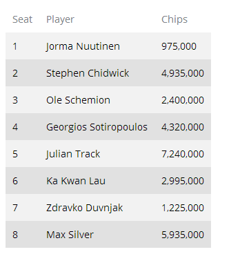 Τα stacks του τελικού τραπεζιού και τα χρηματικά έπαθλα που διεκδικούν οι 8 φιναλίστ: