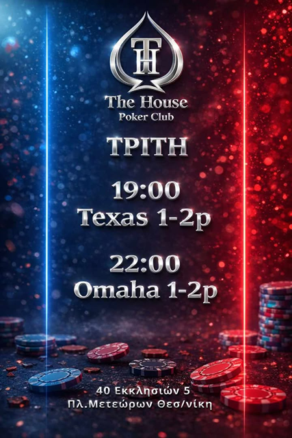 The House Poker Club: Texas και PLO games σε 1p/2p stakes