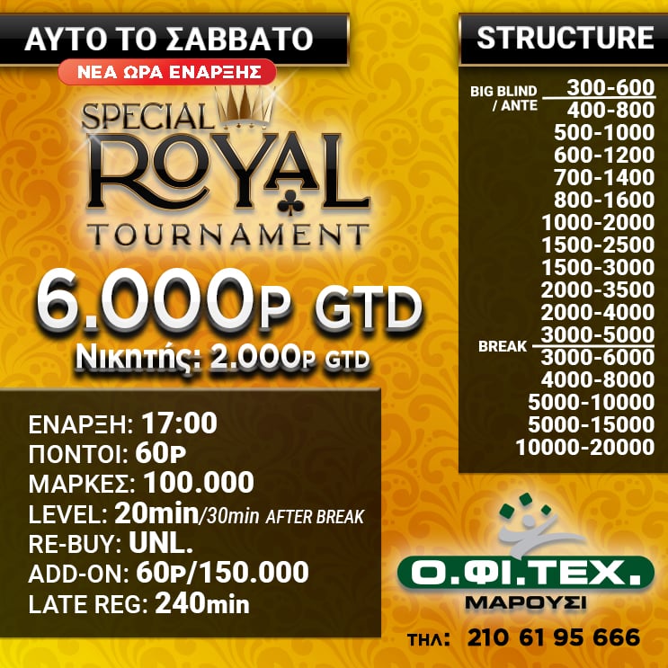 O.ΦΙ.ΤΕΧ.: Royal στις 17:00 με 6.000p gtd