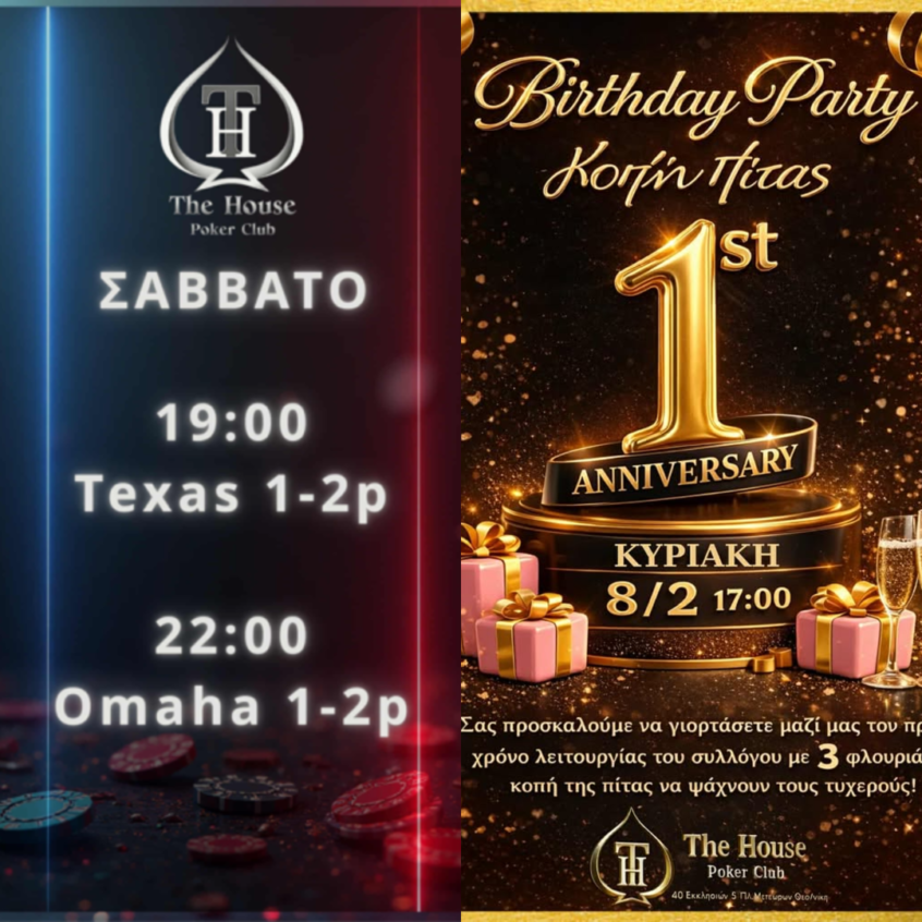 The House Poker Club: Ring games σήμερα, κοπή πίτας με εκπλήξεις για τον 1 χρόνο την Κυριακή