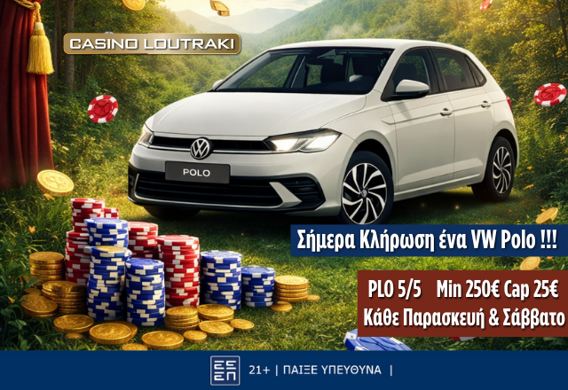€5/€5 Omaha με δωρεάν διαμονή & κλήρωση VW Polo στο Casino Loutraki σήμερα