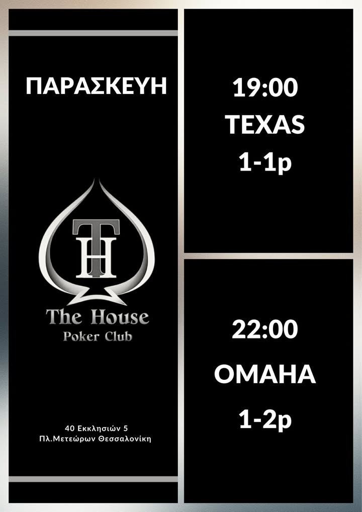 The House Poker Club: Παρασκευή με Texas & Omaha games