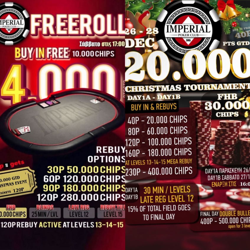 Imperial: Freeroll στις 17:00 με 4.000p gtd κι έρχεται Christmas 20k gtd!
