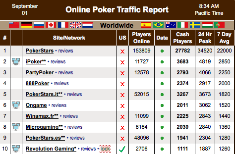 Σύμφωνα με τα τελευταία στατιστικά στοιχεία του PokerScout (στιγμιότυπο επάνω), η κίνηση στις αίθουσες του online πόκερ μειώθηκε κατά 0.6% τις τελευταίες 7 μέρες.