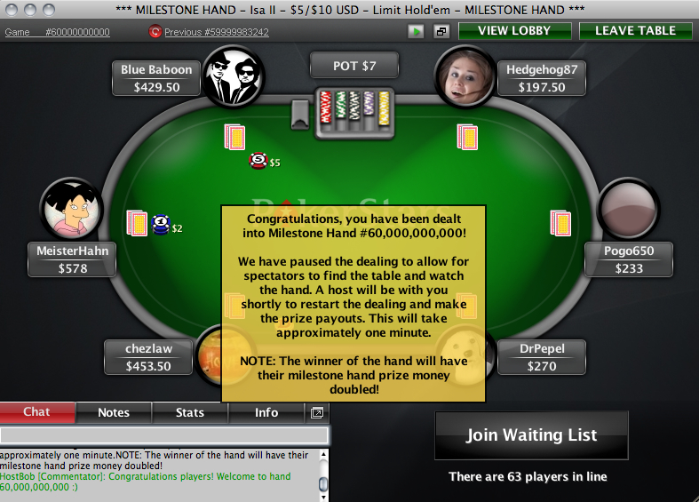 60 δισεκατομμύρια hands γιορτάζει το Pokerstars!