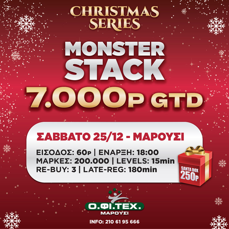Ο.ΦΙ.ΤΕΧ.: Χριστουγεννιάτικο Monsterstack με 7.000p gtd στις 18:00!