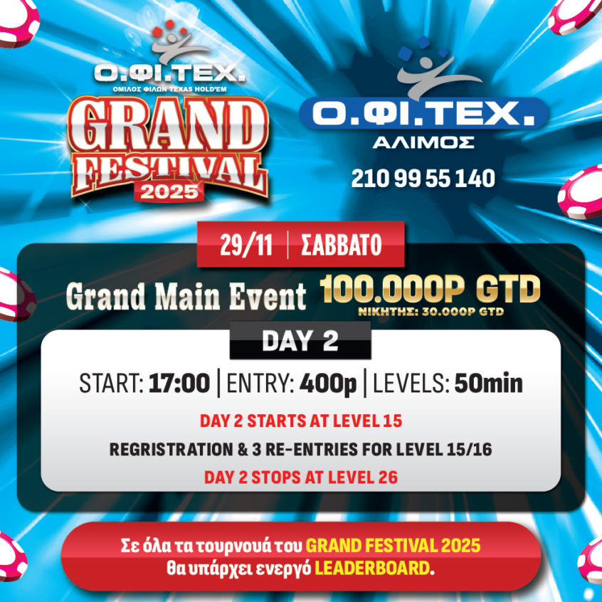 O.ΦΙ.ΤΕΧ.: Chip leader της Day 1a o Πουλιέζος, στον Άλιμο η Day 1b κι έρχεται Xmas Series!