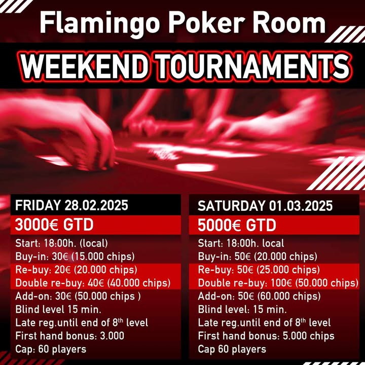 Tριήμερο με τουρνουά και cash games σας περιμένει στο Flamingo poker room, … Read More