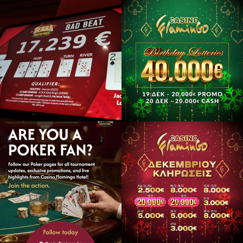 Flamingo: Έσκασε το μεγαλύτερο bad beat jackpot μοιράζοντας €39.021!