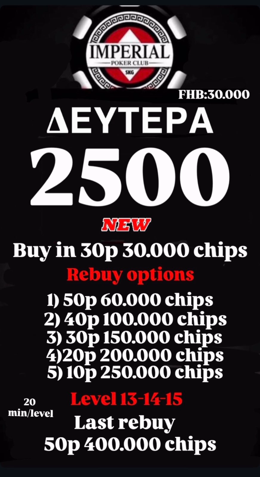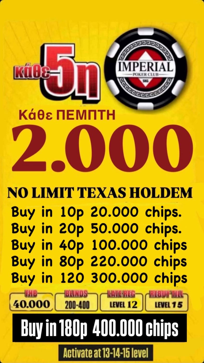 Ιmperial: Τουρνουά στις 18:00 με 2.000p gtd