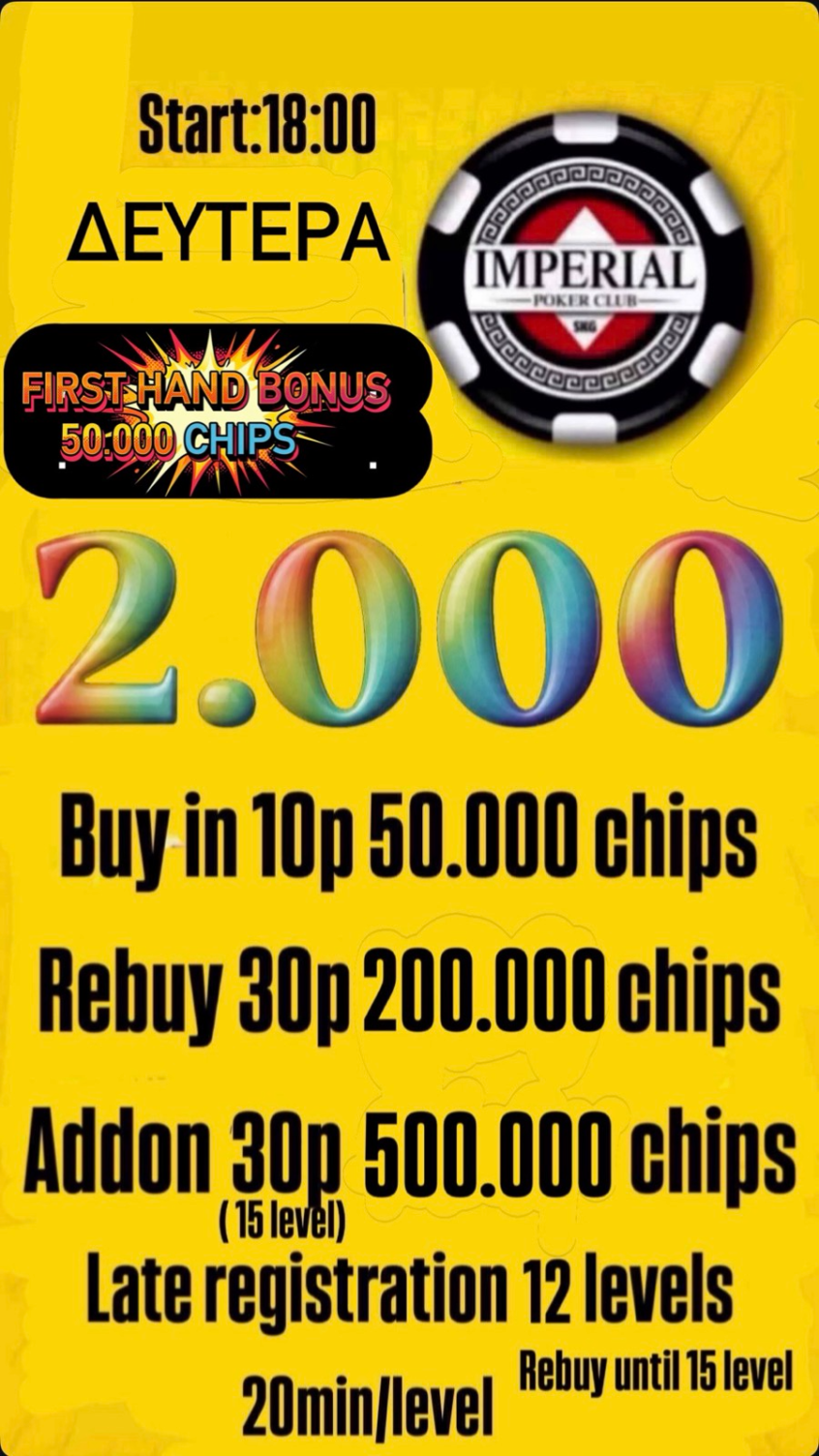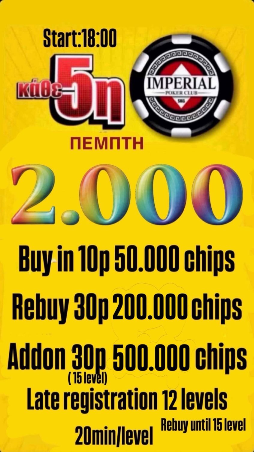 Imperial: Mίνι τουρνουά στις 18:00 με 2.000p gtd