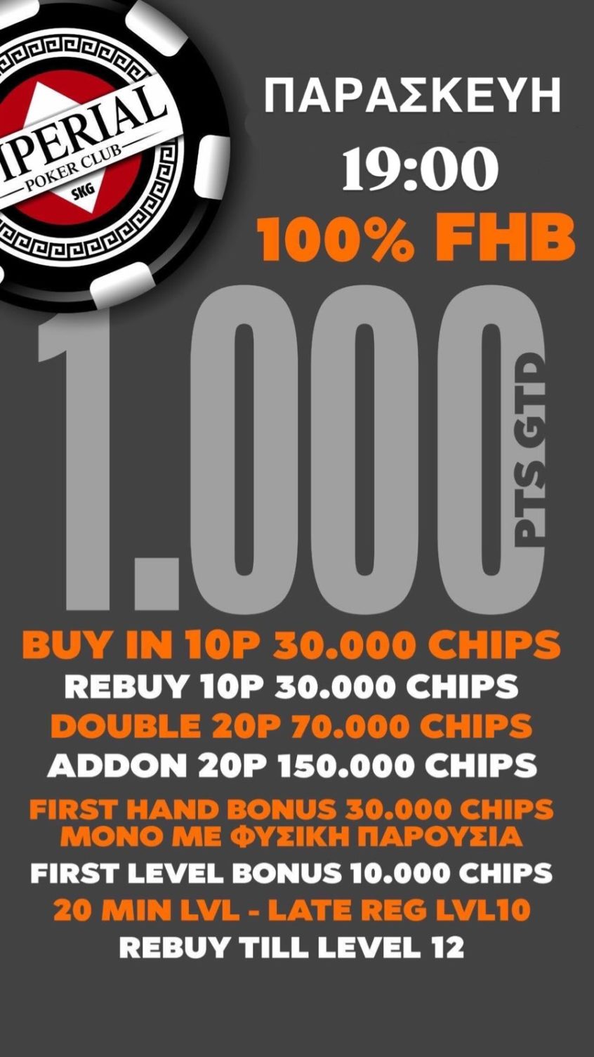 Imperial: Heads-up deal χθες, 1.000p gtd στις 19:00