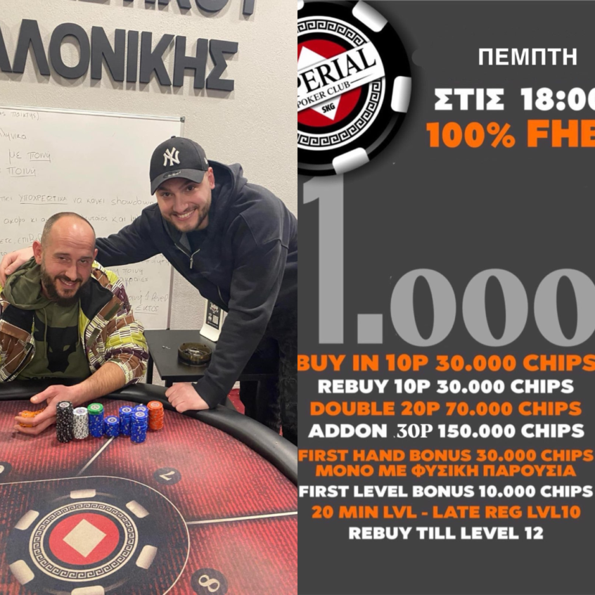 Imperial: Heads-up deal χθες, 1.500p gtd στις 18:00
