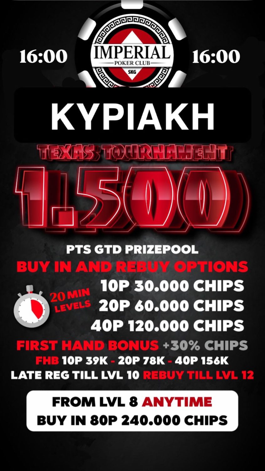 Ιmperial: Τουρνουά στις 16:00 με 1.500p gtd