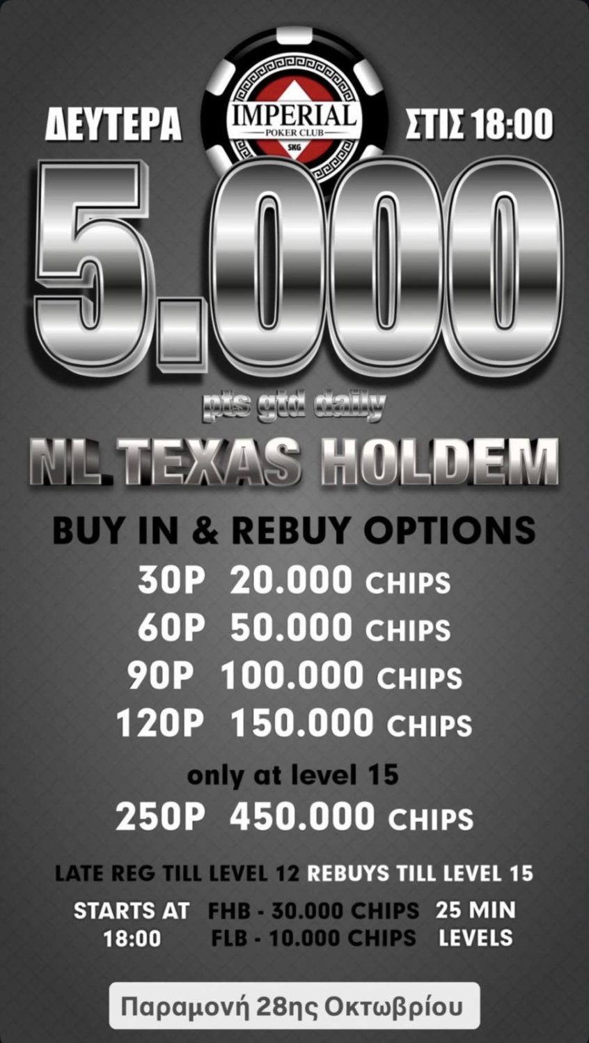 Ιmperial: Τουρνουά στις 18:00 με 2.000p gtd