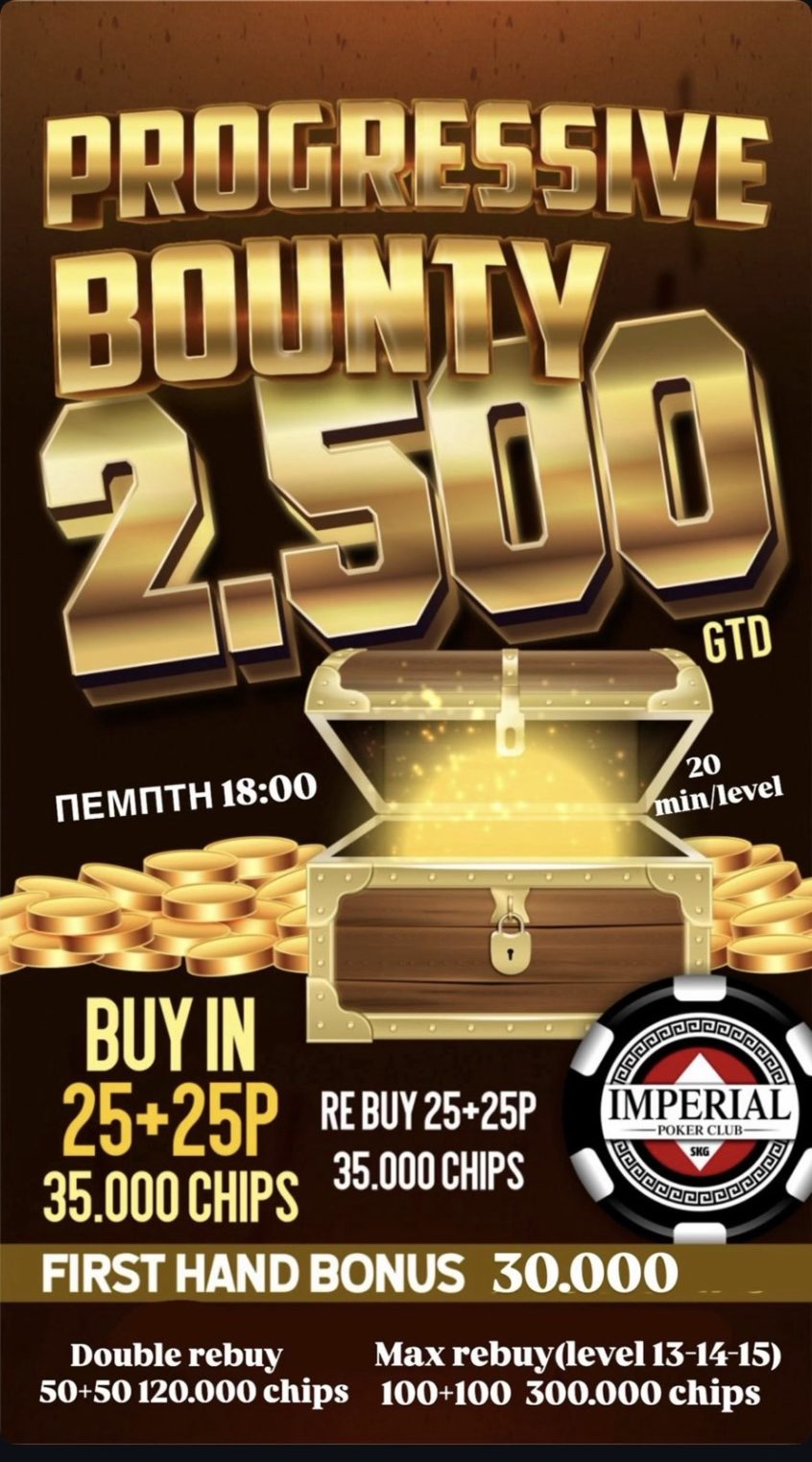 Imperial: Στις 18:00 το Progressive Bounty με 2.500p gtd