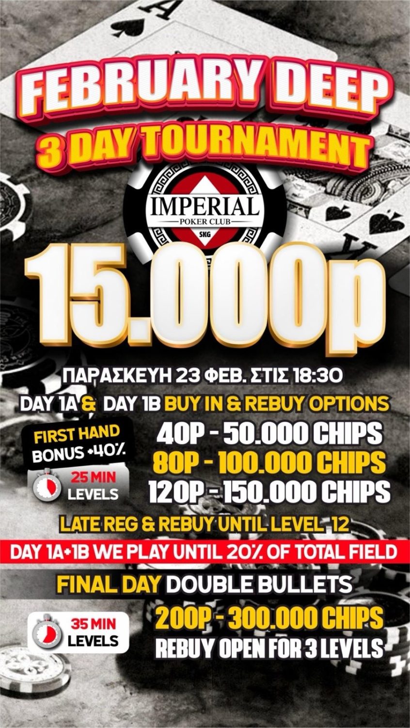 Imperial: Δέκα πακέτα χθες, Deepstack με 1.000p gtd στις 18:30