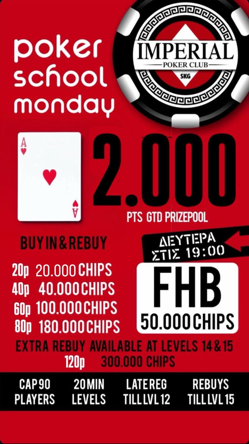 Ιmperial: Poker School Monday στις 19:00 με 2.000p gtd