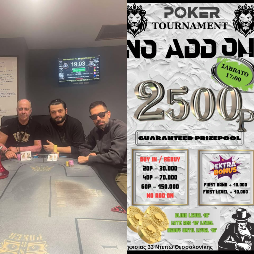 King: No Addon με 2.500p gtd στις 17:00 και ring games
